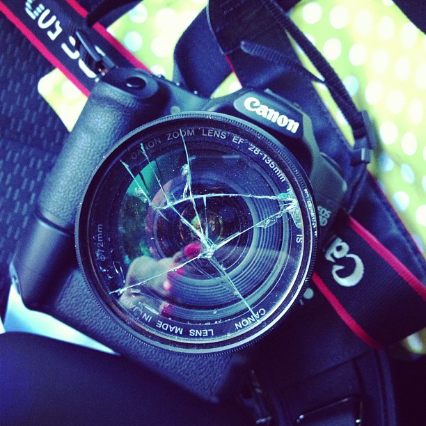 | My camera after dropping it face down on the cement today. Awesome. |